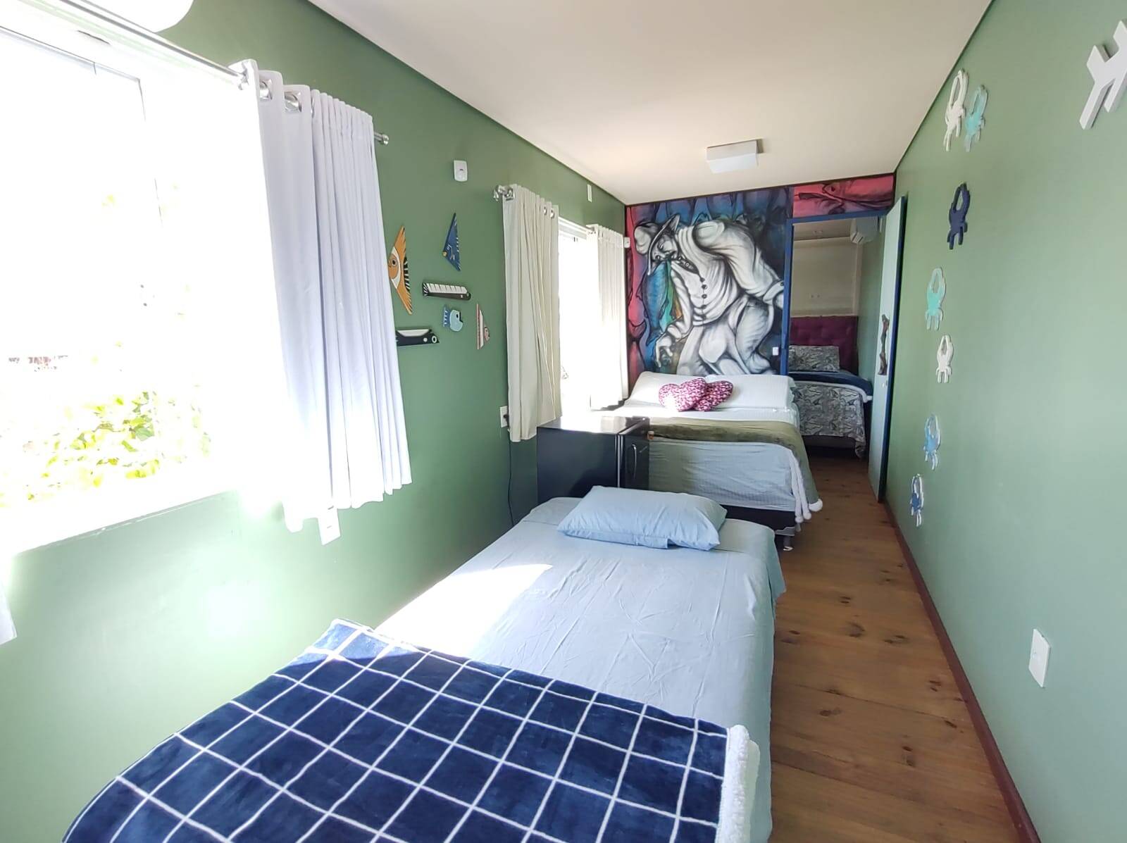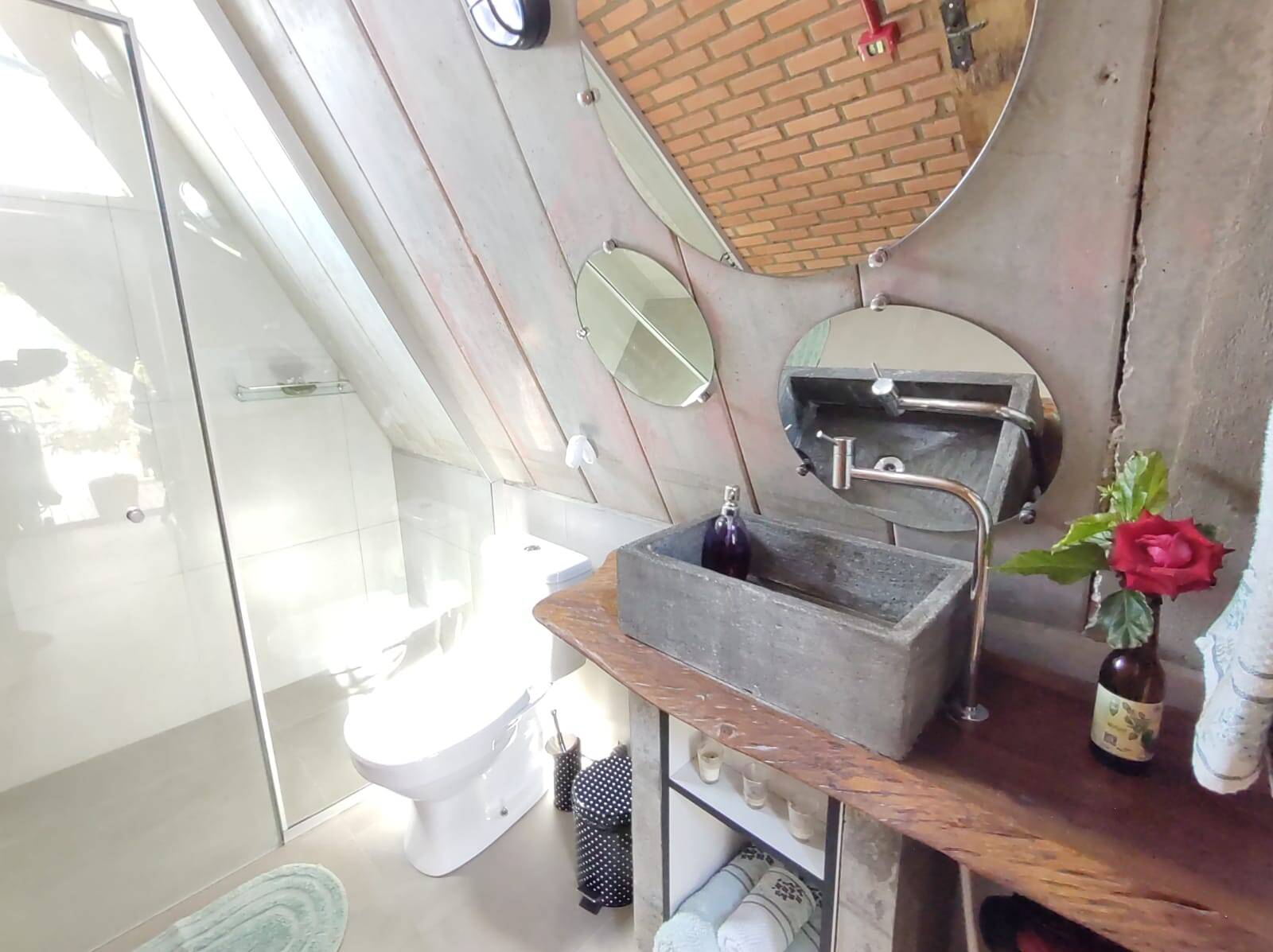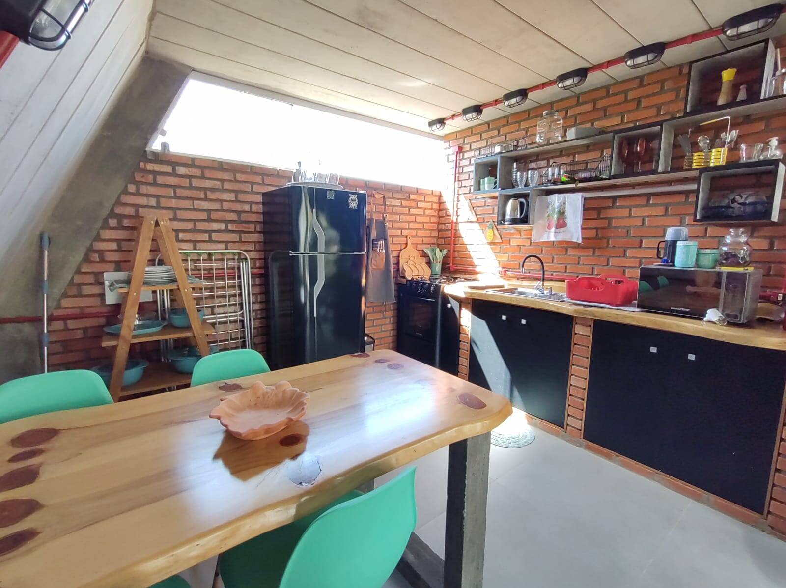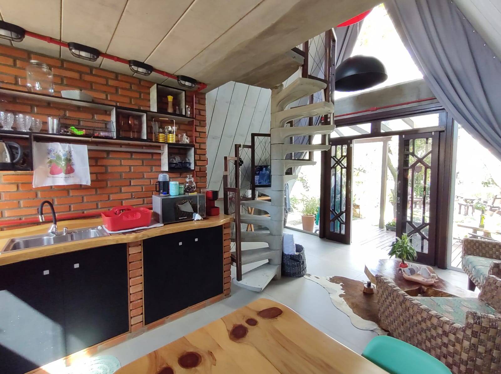 A segunda edificação, trata-se de um excelente sobrado (em container), distribuído na parte térrea: cozinha com área externa para as refeições (em deck), lavanderia e 02 banheiros sociais. No piso superior conta com 02 dormitórios, banheiro social, área de estar e mirante. Área externa com gramado, lareira, hidro massagem com água aquecida por painel solar, chafariz e flores.