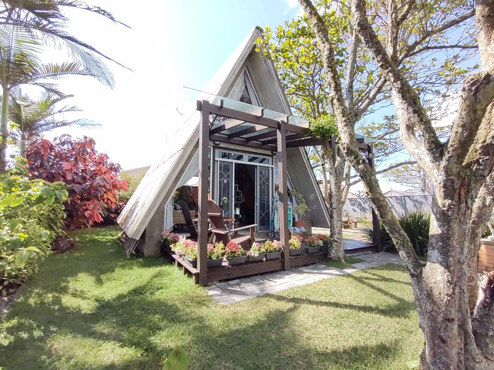 Código 2111 - Localizado a poucos metros do mar, existe um lugar paradisíaco, opção perfeita para quem quer muita tranquilidade e sossego, absolutamente encantador. Paraíso para aqueles que procuram uma verdadeira conexão com a natureza. São 1.400m² de terreno, com árvores frutíferas, horta e espaço de lazer com lareira externa. Tudo isso, contendo 02 edificações, sendo: Chalé, com laje inclinada, sala/copa/cozinha conjugada, banheiro social, mezanino com dormitório e vista parcial para o mar.
