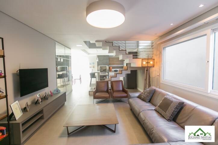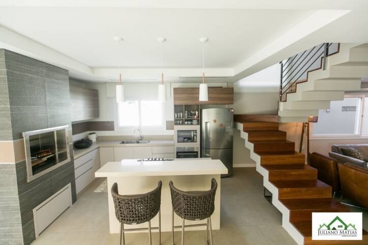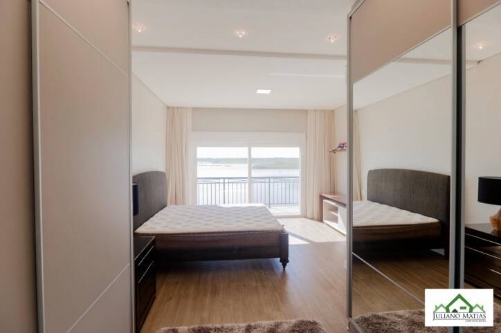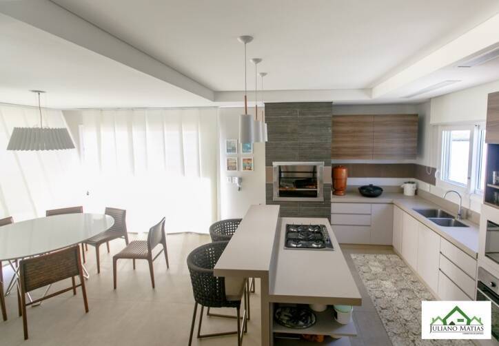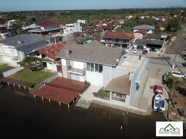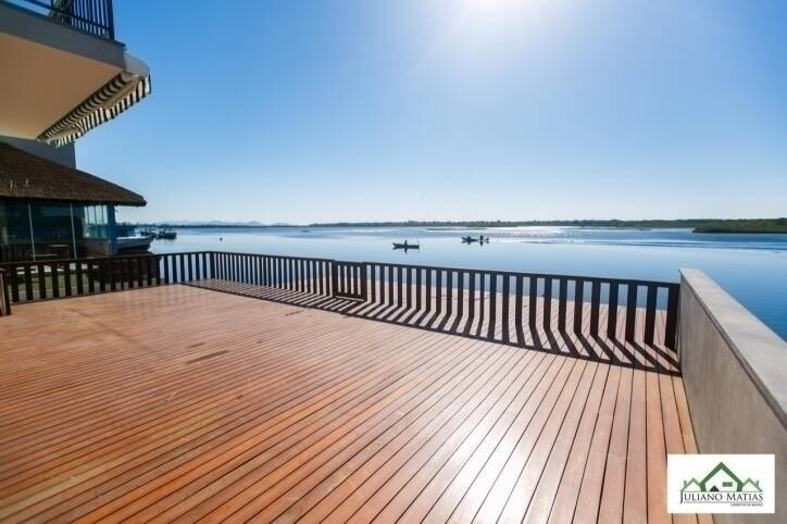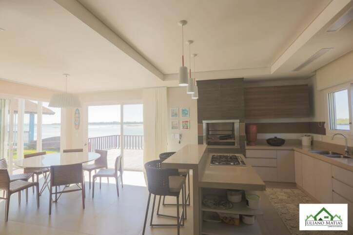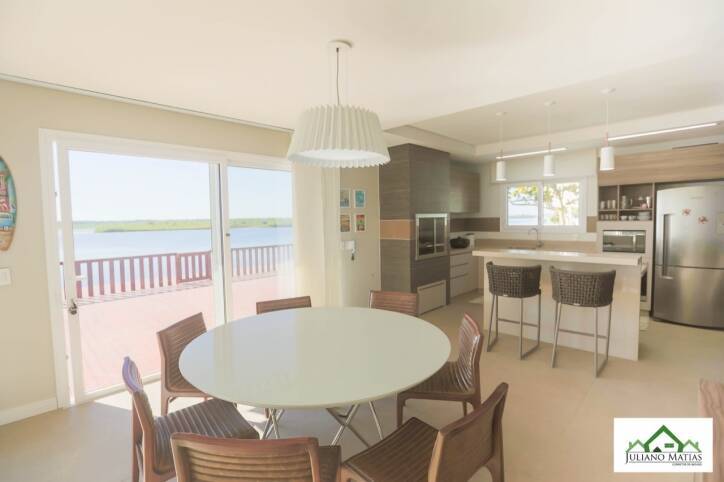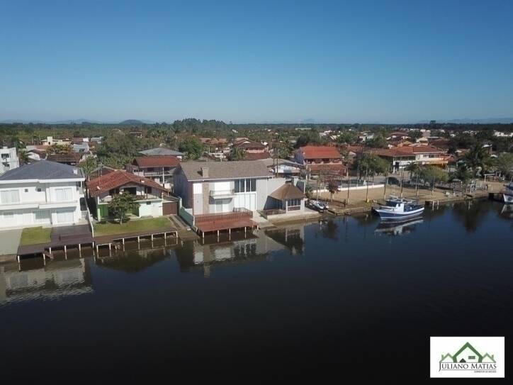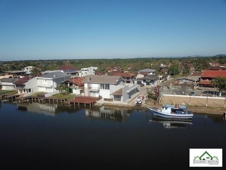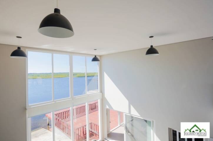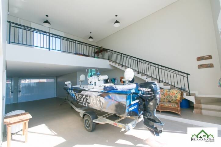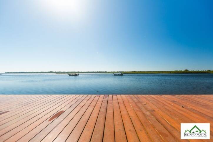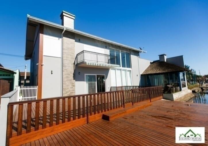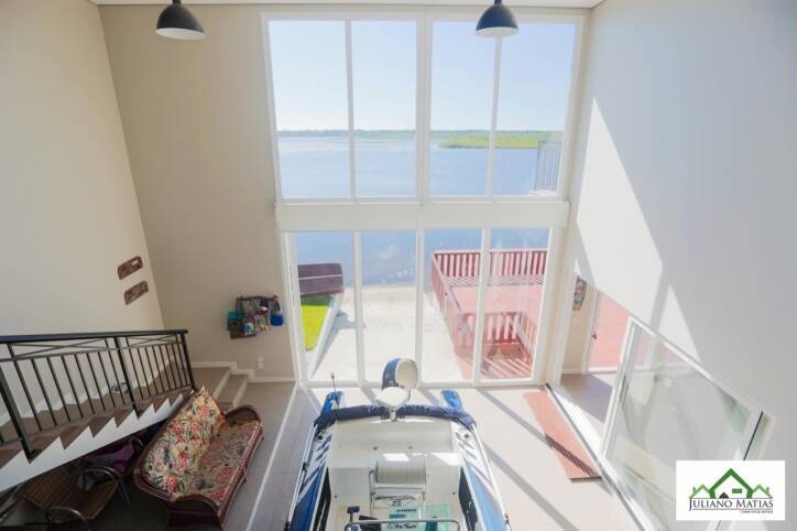 Código 1326 - Sobrado (ALTO PADRÃO) fundos para lagoa, amplo terreno com área total de 466,05m² (23,90 x 19,50), área construída de 500,00m², 3 dormitórios sendo uma suíte, amplo living integrado a cozinha (com churrasqueira) e sala de jantar, 2 banheiros, lavado, lavanderia, 3 vagas de garagem para automóvel e uma vaga para barco, mezanino, quintal, deck de madeira com pier e espaço gourmet integrado a lagoa. Anexo a residencia possui uma sala comercial.