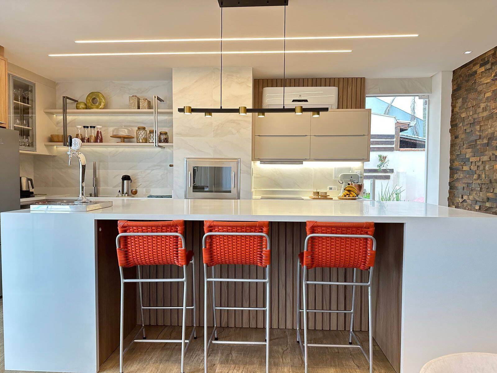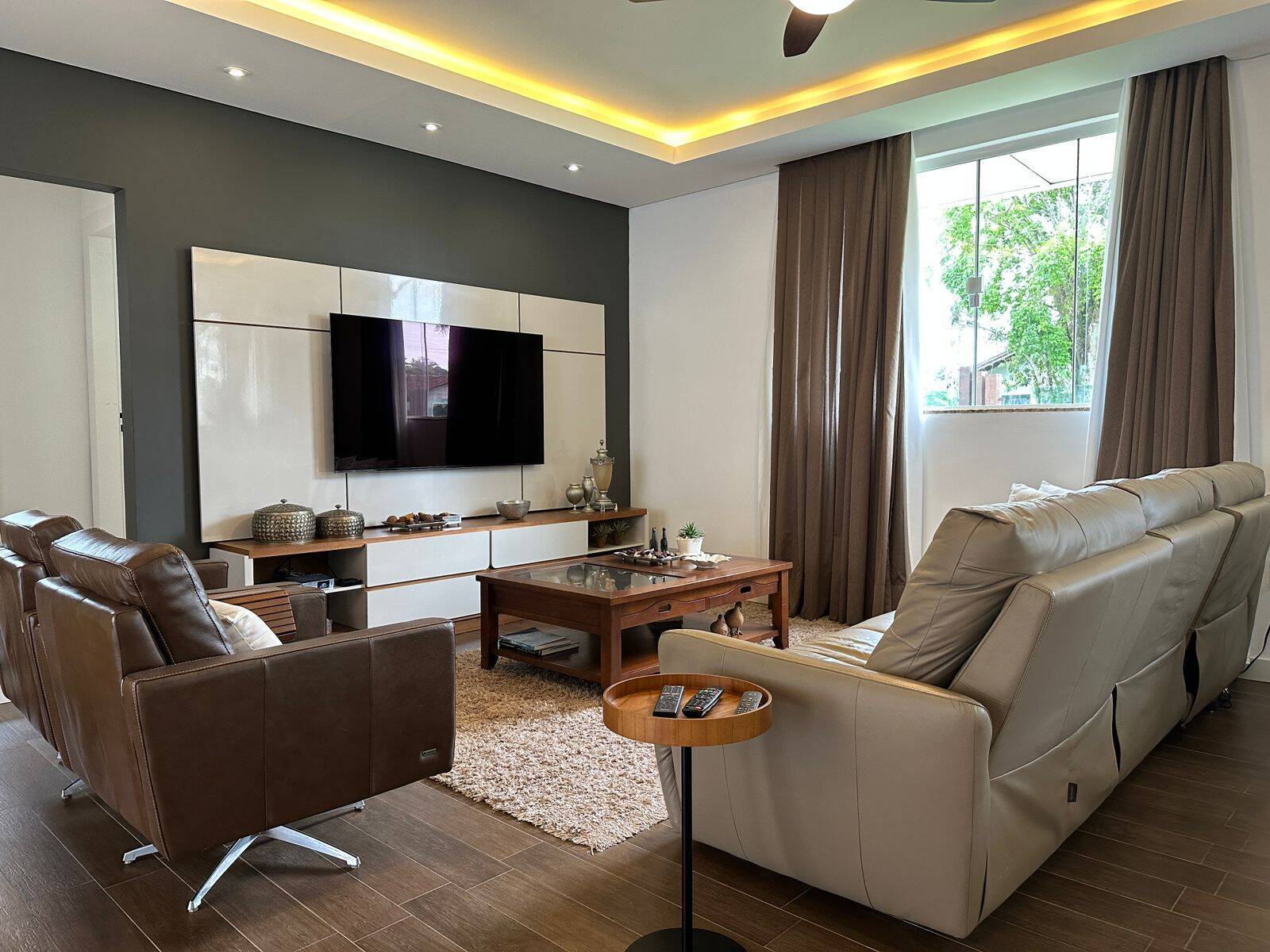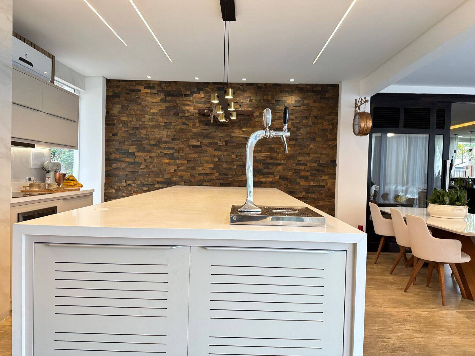 Imóvel ainda conta com sistema de Segurança, alarme com opções de aplicativo, ligar e desligar, ar condicionados, lâmpadas e Sistema de Câmera.