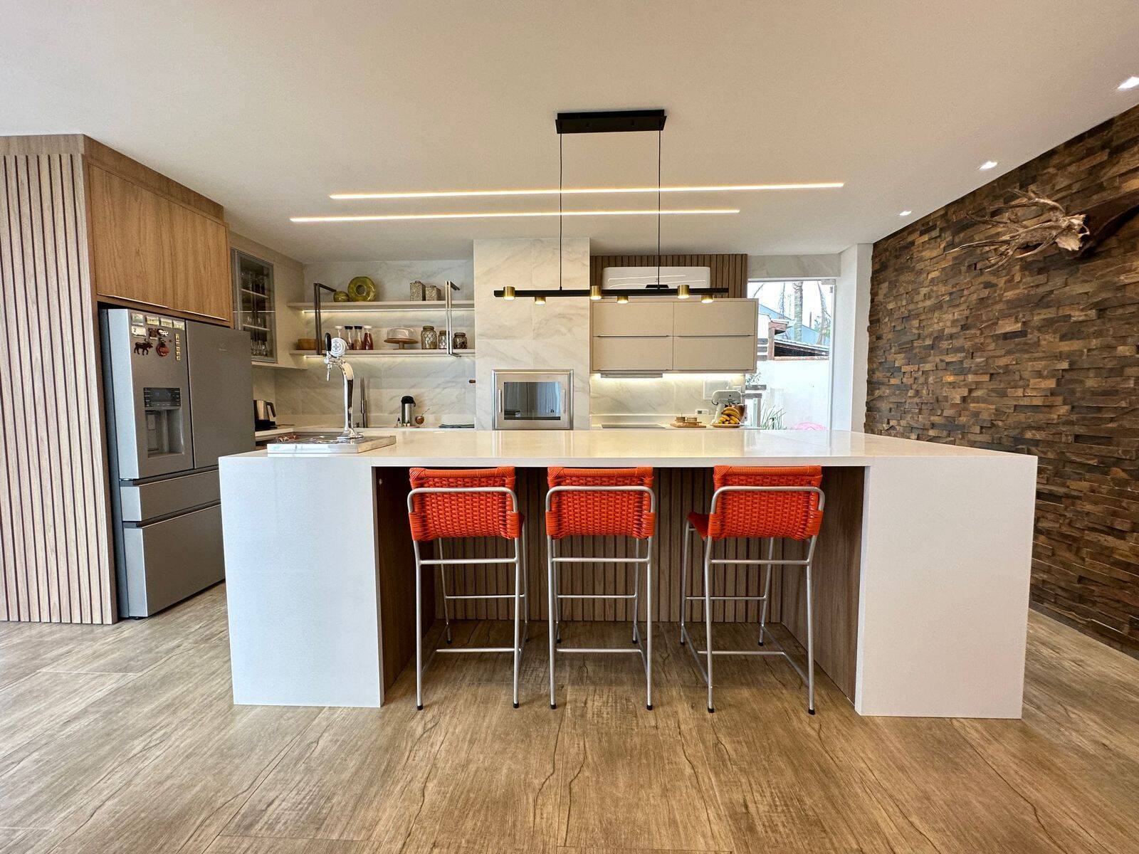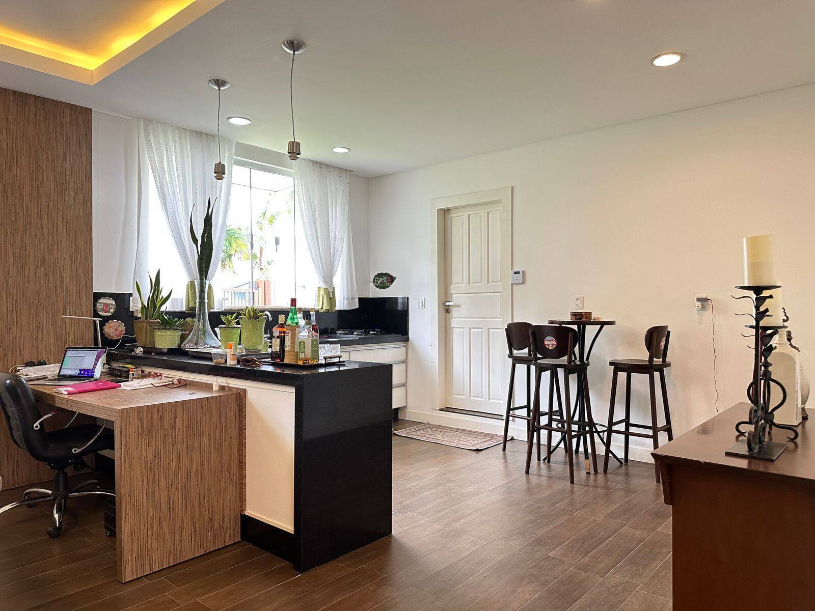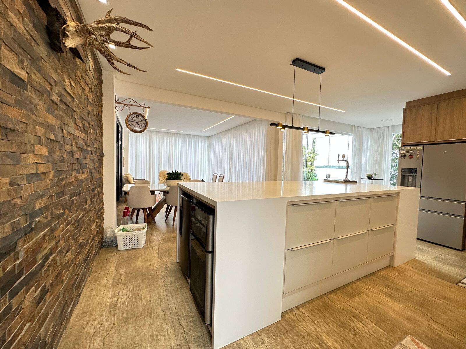 Código 3057 - Casa em Alvenaria moderna, ideal para quem adora receber bem os convidados. Com uma área construída de 200,00m² sobre terreno de 1.347,72m², distribuída na área intima com 3 dormitórios sendo 1 suíte com closet e uma bela vista para lagoa da Barra do Sul, já na área social um amplo living com sala de estar, sala de TV, cozinha , cozinha gourmet com torneira de Chopp, lavanderia, varanda, 2 vagas de garagem coberta para dois veículos, quintal e piscina.