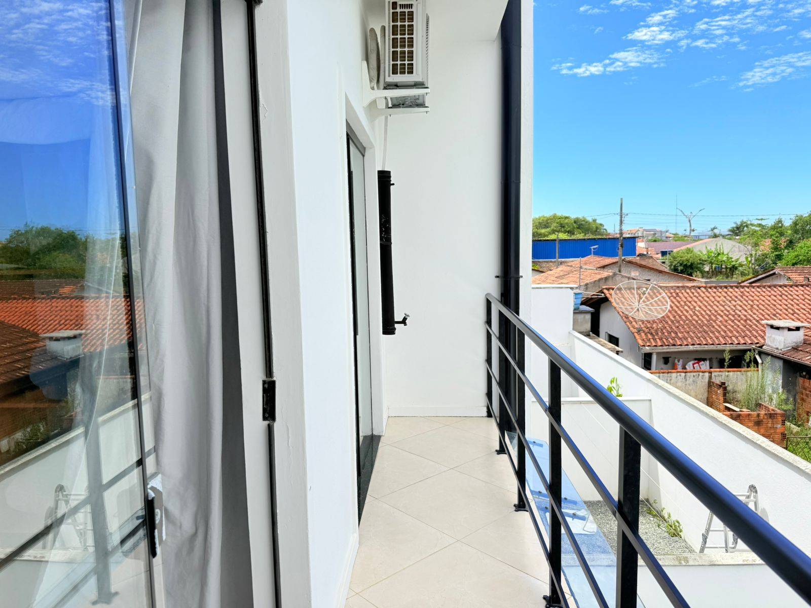 A distancia da lagoa é de aproximadamente 100m (sacada com vista parcial da lagoa )
