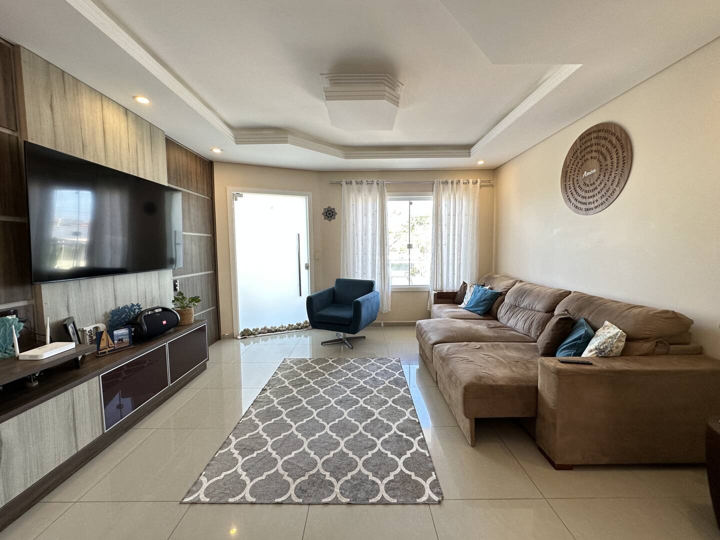 Código 2355 - Sobrado + 2 Salas Comerciais, com área total de 360,00m² (12,00 x 30,00), com área construída de 250,00m², distribuída na área íntima por 3 dormitórios sendo uma suíte, e na área social com amplo living com uma cozinha e copa, sala de jantar, sala de estar e TV integrado ao living, sacada, na parte térrea 2 vagas de garagem, um espaço com churrasqueira gourmet, cozinha, lavabo, lavanderia, piscina, 2 amplas salas comerciais com banheiro para cada, ainda conta o imóvel com placas solares, moveis sob medida, alarme, portão eletrônico e chave eletrônica.